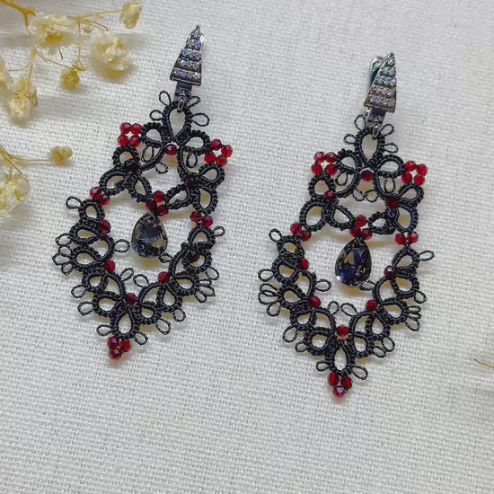 Elegant lace earrings crafted in the timeless tatting technique.