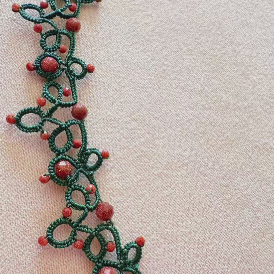 Indulge in the elegance of timeless craftsmanship with this unique handmade jewelry set, featuring a delicate lace necklace and matching earrings. Each piece is meticulously created using the traditional tatting technique – a rare form of lace-making where every knot is made entirely by hand.